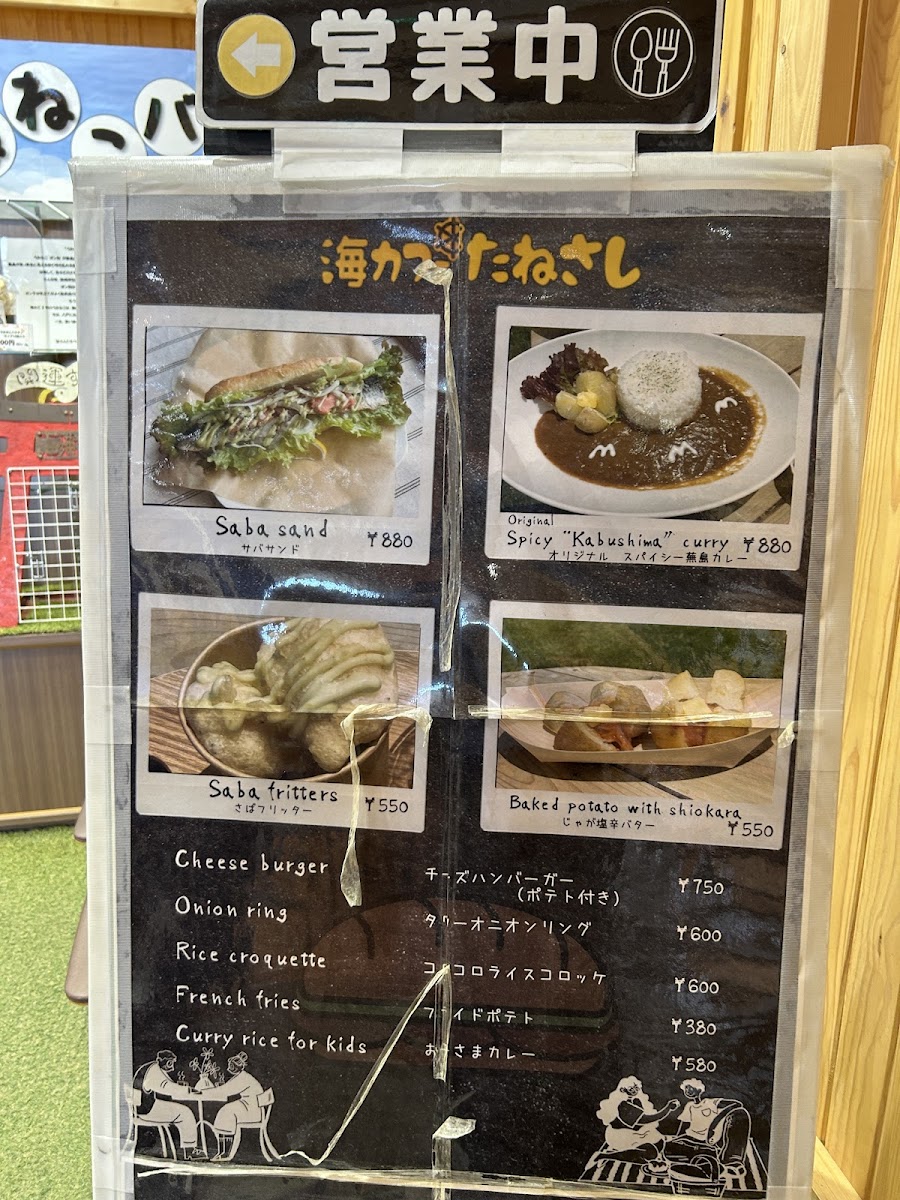 The menu at Umi Cafe Tanesashi showcases a variety of offerings that highlight local flavors. Popular dishes include the aromatic saba sandwich, featuring perfectly grilled mackerel that melts in your mouth, and the spicy curry adorned with whimsical designs of flying seabirds, making it a feast for both the eyes and the palate. The flavors are further enhanced when enjoyed with a refreshing squeeze of lemon. If you're in the mood for a treat, don't miss out on the saba fritter, known for its crispy exterior and juicy interior, representing the best of the regional catch.